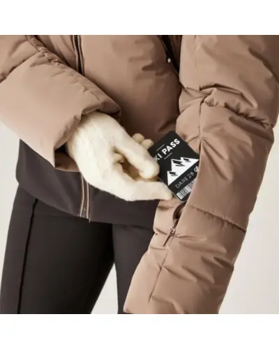 Női prémium síkabát 15.000, Prémium női softshell síkabát vízálló, légáteresztő, újrahasznosított anyagból, Swarovski kristályos díszítéssel, Ez az exkluzív női síkabát Ared 15/15 membránnal készült, amely 15 000 mm vízállóságot és 15 000 g/m?/24h légáteresztést biztosít, így megbízható védelmet nyújt a hó, szél és hideg ellen. A Swarovski kristályos díszítés elegáns, prémium megjelenést kölcsönöz, míg a teljes sífunkciós felszereltség beleértve a síbérlet-zsebet, belső tárolózsebet és hővédő részleteket a maximális kényelmet garantálja. Ideális választás síeléshez, snowboardozáshoz, téli túrákhoz és aktív szabadtéri programokhoz., Újrahasznosított, vízálló és légáteresztő anyag Ared 15/15 (15 000 mm / 15 000 g/m?/24h), Swarovski kristályos díszítés a kapucninyílásnál, jelvényeken és cipzárhúzókon, Kritikus varrások vízálló ragasztása a fokozott védelemért, Tartós vízlepergető (DWR) felületkezelés, Levehető, állítható kapucni, Síbérlet-zseb az ujjon, Puha polár gallérbélés a nagyobb hőérzetért, Meleg belső ujjmandzsetták, Belső hálós tárolózseb szemüvegtörlő kendővel, Kopásálló, hosszú élettartamra tervezett anyag, PFC-, PFOA-, PFOS-mentes kivitel, Kényelmes, laza szabás, Ajánlott: női síkabát és női sídzseki síeléshez, snowboardozáshoz, téli sportokhoz, havas kirándulásokhoz és hideg időben történő városi viselethez.