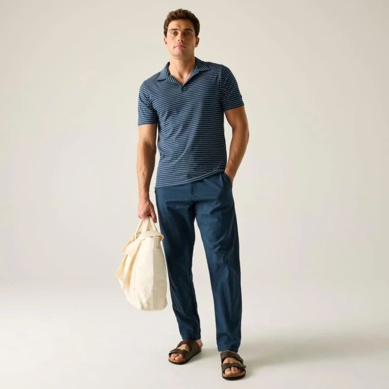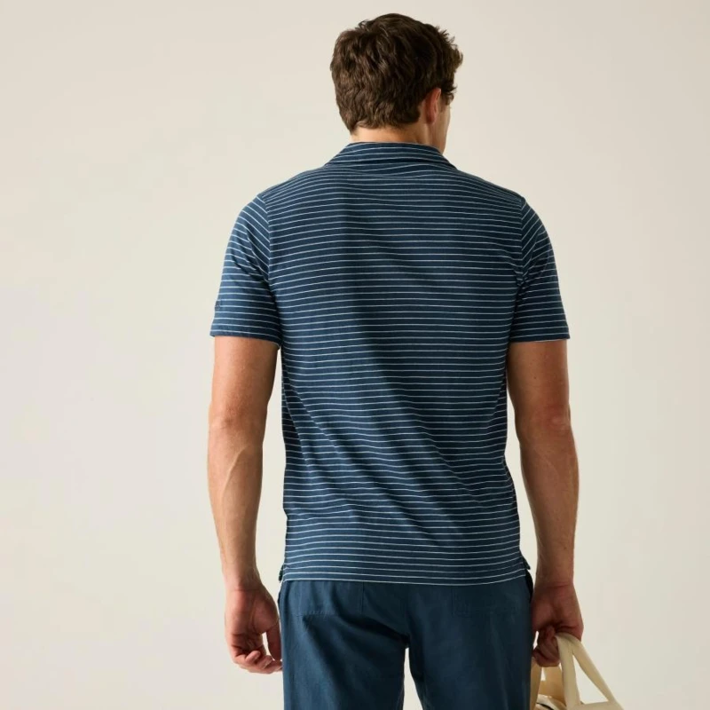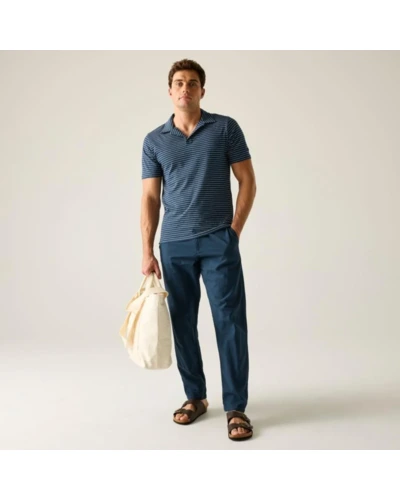 Férfi póló, Prémium férfi waffle póló pamut-poliészter kevertszálas anyag, UPF 30 UV-védelem, sportos részletek, Ez a férfi rövid ujjú póló 53% pamut / 47% poliészter összetételû, 180 g/m? súlyú waffle textúrájú anyagból készült. A strukturált felület modern megjelenést és kellemes légáteresztést biztosít, míg a kevertszálas összetétel tartósságot és formatartást nyújt. A bordázott gallér és mandzsetta, valamint a kétgombos nyakpánt sportosan elegáns stílust kölcsönöz. Az oldalsó hasítékok fokozzák a kényelmet és a mozgásszabadságot, az UPF 30 UV-védelem pedig segít csökkenteni a napsugárzás hatását., Főbb jellemzők:, 53% pamut / 47% poliészter waffle textúrájú anyag, 180 g/m?, Bordázott gallér és mandzsetta, 2 gombos nyakpánt, Oldalsó hasítékok, UPF 30 UV-védelem, Ajánlott: Férfi galléros pólóként ideális mindennapi viselethez, utazáshoz, kiránduláshoz és nyári szabadtéri programokhoz. Kiváló választás melegebb időben, amikor fontos a komfort, a tartósság és a sportosan elegáns megjelenés., Fenntarthatóság: A pamut és poliészter kevertszálas anyag tartós és jól formatartó, így hosszabb élettartamot biztosít. A minőségi kivitel csökkenti a gyakori ruhacsere szükségességét, mérsékelve a környezeti terhelést.