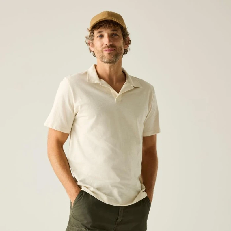 Férfi póló, Prémium férfi waffle póló pamut-poliészter kevertszálas anyag, UPF 30 UV-védelem, sportos részletek, Ez a férfi rövid ujjú póló 53% pamut / 47% poliészter összetételû, 180 g/m? súlyú waffle textúrájú anyagból készült. A strukturált felület modern megjelenést és kellemes légáteresztést biztosít, míg a kevertszálas összetétel tartósságot és formatartást nyújt. A bordázott gallér és mandzsetta, valamint a kétgombos nyakpánt sportosan elegáns stílust kölcsönöz. Az oldalsó hasítékok fokozzák a kényelmet és a mozgásszabadságot, az UPF 30 UV-védelem pedig segít csökkenteni a napsugárzás hatását., Főbb jellemzők:, 53% pamut / 47% poliészter waffle textúrájú anyag, 180 g/m?, Bordázott gallér és mandzsetta, 2 gombos nyakpánt, Oldalsó hasítékok, UPF 30 UV-védelem, Ajánlott: Férfi galléros pólóként ideális mindennapi viselethez, utazáshoz, kiránduláshoz és nyári szabadtéri programokhoz. Kiváló választás melegebb időben, amikor fontos a komfort, a tartósság és a sportosan elegáns megjelenés., Fenntarthatóság: A pamut és poliészter kevertszálas anyag tartós és jól formatartó, így hosszabb élettartamot biztosít. A minőségi kivitel csökkenti a gyakori ruhacsere szükségességét, mérsékelve a környezeti terhelést.