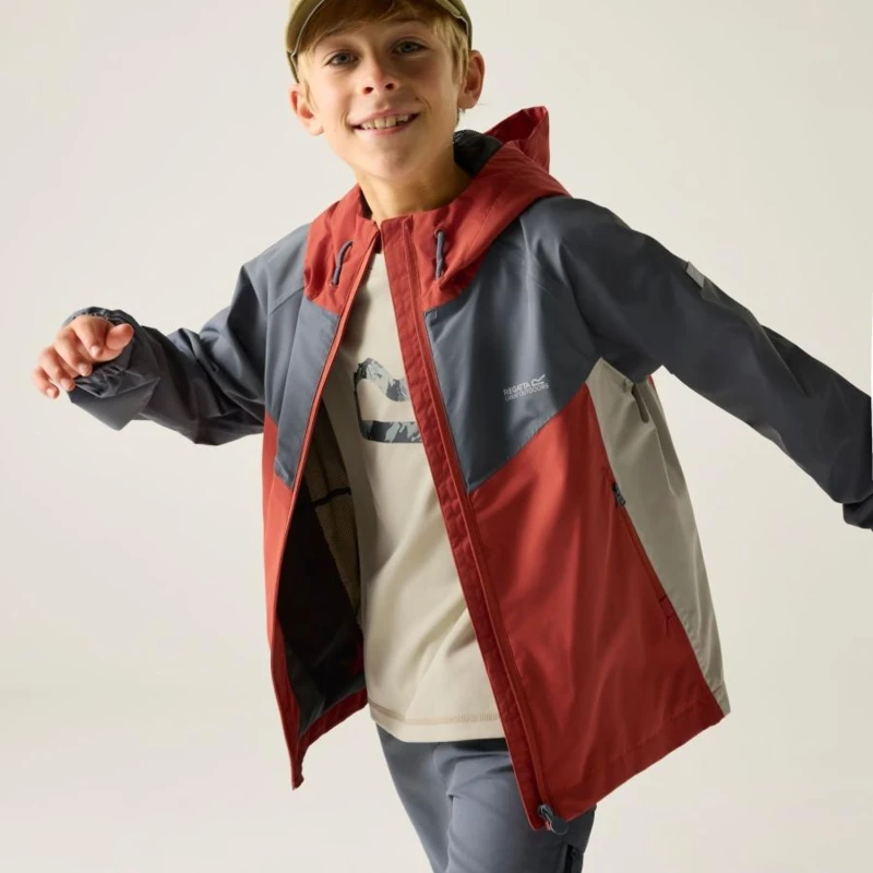 Gyerek esőkabát 15000 mm, Prémium gyerek vízálló technikai kabát – ISOTEX 15000 stretch, 15 000 g/m?/24h légáteresztés, 165 g/m?, Ez a gyerek technikai kabát vízálló és légáteresztő ISOTEX 15000 100% poliészter stretch anyagból készült, 165 g/m? súlyban. A 15 000 g/m?/24 óra légáteresztési teljesítmény aktív használat során is megfelelő komfortot biztosít. A ragasztott varratok és a tartós vízlepergető bevonat teljes körû védelmet nyújtanak csapadékos időben, míg a hálós bélés fokozza a kényelmet., Főbb jellemzők:, Vízálló, légáteresztő ISOTEX 15000 100% poliészter stretch anyag, 165 g/m?, Légáteresztési érték: 15 000 g/m?/24 óra, 100% poliészter hálós bélés, taft bélésû ujjak, Ragasztott varratok a teljes vízálló védelemért, Tartós vízlepergető bevonat, Beépített kapucni, 2 alsó cipzáras paszpólos zseb, Nyomtatott névcímke 8 éves korig, 360°-os fényvisszaverő részletek, Ajánlott: Gyerek vízálló kabátként ideális iskolába, kiránduláshoz és aktív szabadtéri programokhoz esős, szeles időjárási körülmények között. Kiváló választás, ha fontos a megbízható vízállóság, a komfort és a fokozott láthatóság., Fenntarthatóság: A strapabíró poliészter alapanyag hosszú élettartamot biztosít, ellenáll a mindennapi igénybevételnek. A minőségi kivitel több szezonon át megbízható teljesítményt nyújt.