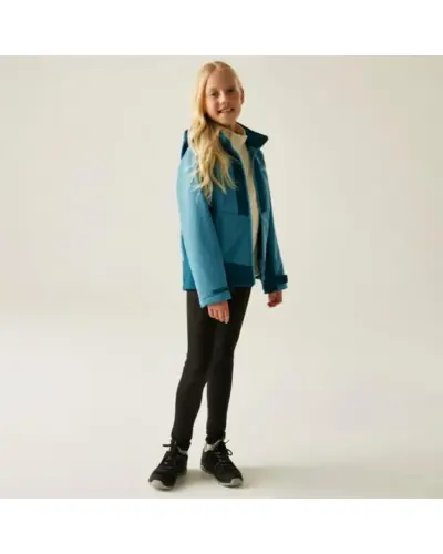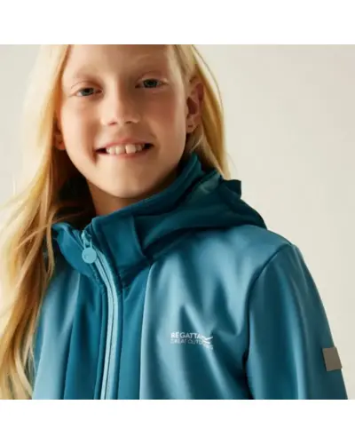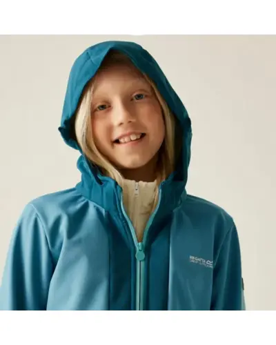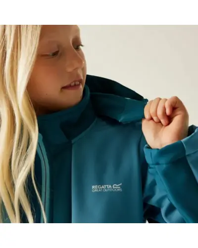Gyerek softshell, Gyerek Softshell XPT kabát vízálló, szélálló és rugalmas kényelem, Ez a gyerek Softshell XPT kabát megbízható védelmet nyújt a nedves és szeles időjárásban, miközben a rugalmas sztreccs anyag teljes mozgásszabadságot biztosít. A levehető kapucni praktikus megoldás, a belső puha, meleg hátoldal pedig extra komfortot ad a hidegebb napokon. A 360°-os fényvisszaverő elemek gondoskodnak a jobb láthatóságról, így biztonságosabb a szabadtéri játék és közlekedés., Anyag: meleg hátoldalú, sztreccs Softshell XPT 300 g/m?, Vízálló és szélálló membrán (légáteresztés: 10 000 g/m?/24 óra), Tartós vízlepergető bevonat, Levehető, elasztikus kapucni, Kényelmes cipzárvédő betét, 2 cipzáras alsó zseb, Állítható alsó szegély (shockcord, 7 éves kortól), 360°-os fényvisszaverő elemek, Névjegy címke (8 éves korig), Újrahasznosított anyagból készült, Ajánlott: mindennapi iskolába járáshoz, kiránduláshoz, biciklizéshez és aktív szabadidőhöz, Időtálló, kényelmes, fenntartható gyerekbarát védelem minden helyzetre