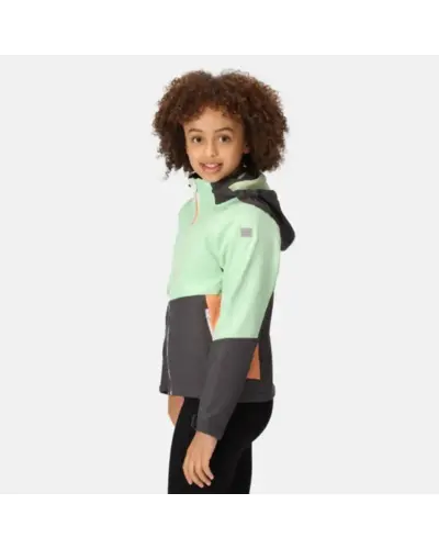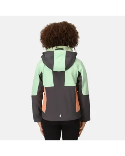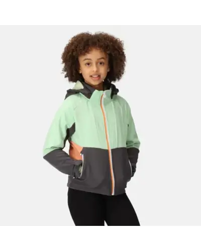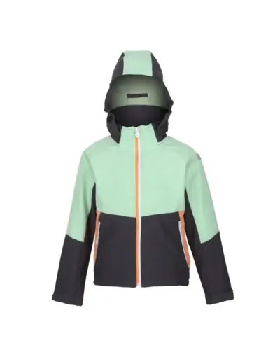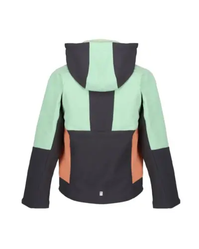 Gyerek softshell kabát, Meleg hátú Softshell XPT sztreccs anyag, Víz- és szélálló membránanyag, Tartós vízlepergető felület, Légáteresztő képesség: 10 000 g/m?/24 óra, Levehető kapucni , 2 cipzáras alsó zseb
