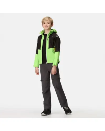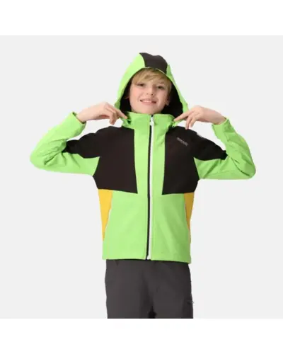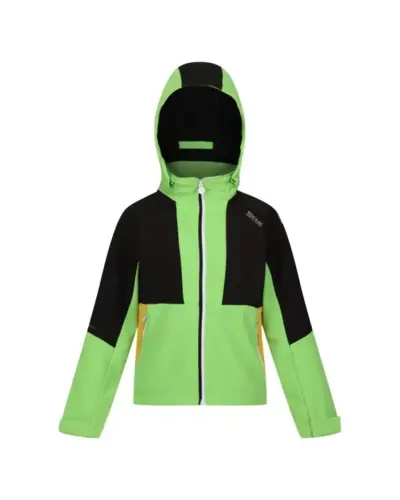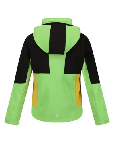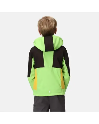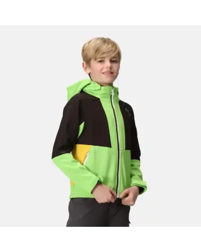 Gyerek softshell kabát, Meleg hátú Softshell XPT sztreccs anyag, Víz- és szélálló membránanyag, Tartós vízlepergető felület, Légáteresztő képesség: 10 000 g/m?/24 óra, Levehető kapucni , 2 cipzáras alsó zseb