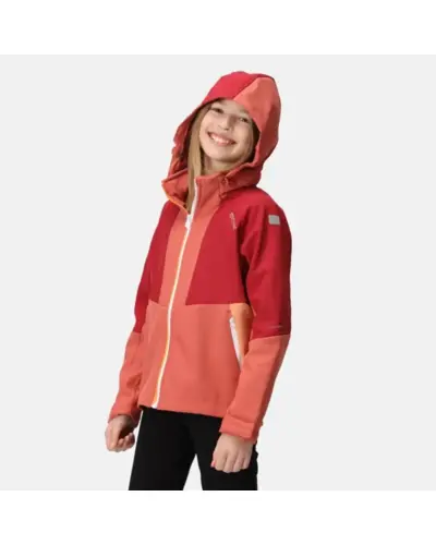 Gyerek softshell kabát, Meleg hátú Softshell XPT sztreccs anyag, Víz- és szélálló membránanyag, Tartós vízlepergető felület, Légáteresztő képesség: 10 000 g/m?/24 óra, Levehető kapucni , 2 cipzáras alsó zseb