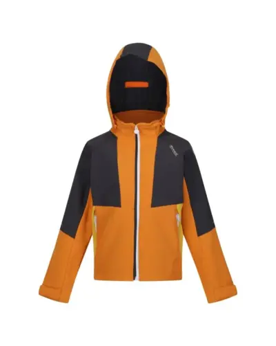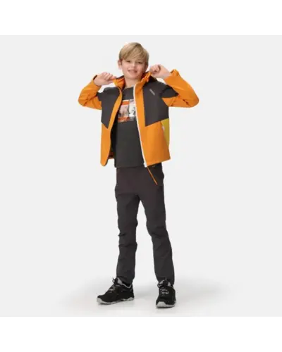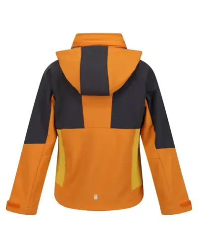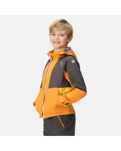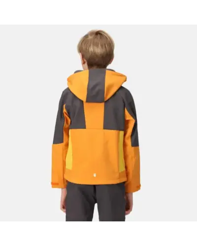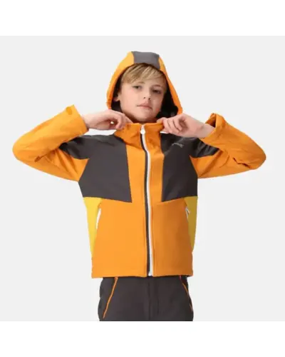 Gyerek softshell kabát, Meleg hátú Softshell XPT sztreccs anyag, Víz- és szélálló membránanyag, Tartós vízlepergető felület, Légáteresztő képesség: 10 000 g/m?/24 óra, Levehető kapucni , 2 cipzáras alsó zseb