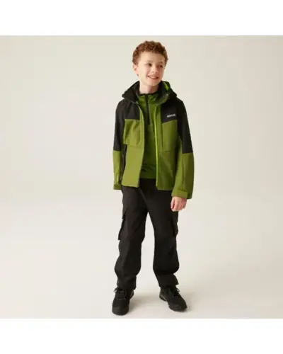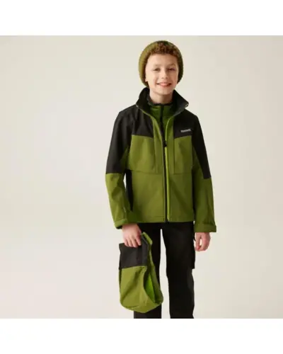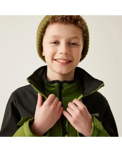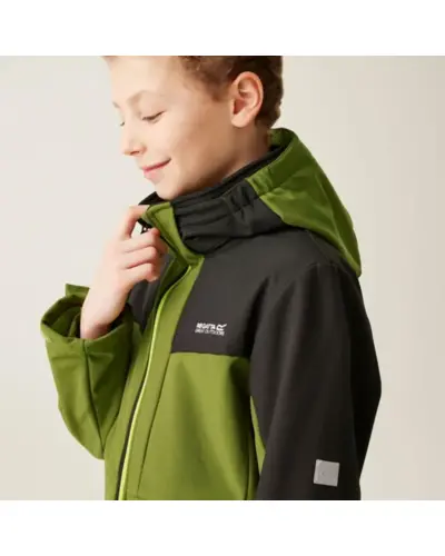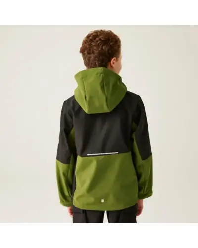 Gyerek softshell kabát, Anyag: Meleg hátoldalú, újrahasznosított Softshell XPT stretch szövet, amely rugalmasságot és kényelmet biztosít., Membrán: Víz- és szélálló membrán anyag, amely megvédi viselőjét a kedvezőtlen időjárási körülményektől., Vízlepergető felület: Tartós vízlepergető bevonattal ellátott, hogy megóvja a kabátot az esőtől és nedvességtől., Lélegzőképesség: 10,000g/m?/24 óra lélegzőképességi érték, amely biztosítja a jó szellőzést és nedvességkezelést., Kapucni: Levehető kapucni elasztikus szegéllyel a jobb illeszkedés és védelem érdekében., Cipzárvédő: Cipzárvédő, amely növeli a kényelmet viselés közben, és véd a szél behatolása ellen., Zsebek: Két cipzáras alsó zseb a biztonságos tárolás érdekében., Állítható szegély: Állítható rugalmas szegély 7 éves kortól, amely lehetővé teszi a kabát szorosabb illeszkedését., Biztonsági elemek: 360 fokos fényvisszaverő csíkok, amelyek növelik a láthatóságot és biztonságot biztosítanak gyenge fényviszonyok között., Nyomtatott névcímke: Nyomtatott névcímke 8 éves korig, amely segíti a kabát azonosítását., Ez a kabát ideális választás változékony időjárási körülmények között, mivel víz- és szélálló, jól szellőzik, kényelmes, és extra biztonsági funkciókkal rendelkezik, miközben környezettudatos megoldásokat kínál.