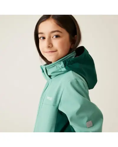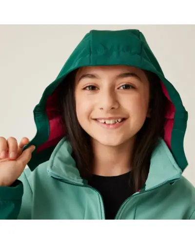 Gyerek softshell kabát, Anyag: Meleg hátoldalú, újrahasznosított Softshell XPT stretch szövet, amely rugalmasságot és kényelmet biztosít., Membrán: Víz- és szélálló membrán anyag, amely megvédi viselőjét a kedvezőtlen időjárási körülményektől., Vízlepergető felület: Tartós vízlepergető bevonattal ellátott, hogy megóvja a kabátot az esőtől és nedvességtől., Lélegzőképesség: 10,000g/m?/24 óra lélegzőképességi érték, amely biztosítja a jó szellőzést és nedvességkezelést., Kapucni: Levehető kapucni elasztikus szegéllyel a jobb illeszkedés és védelem érdekében., Cipzárvédő: Cipzárvédő, amely növeli a kényelmet viselés közben, és véd a szél behatolása ellen., Zsebek: Két cipzáras alsó zseb a biztonságos tárolás érdekében., Állítható szegély: Állítható rugalmas szegély 7 éves kortól, amely lehetővé teszi a kabát szorosabb illeszkedését., Biztonsági elemek: 360 fokos fényvisszaverő csíkok, amelyek növelik a láthatóságot és biztonságot biztosítanak gyenge fényviszonyok között., Nyomtatott névcímke: Nyomtatott névcímke 8 éves korig, amely segíti a kabát azonosítását., Ez a kabát ideális választás változékony időjárási körülmények között, mivel víz- és szélálló, jól szellőzik, kényelmes, és extra biztonsági funkciókkal rendelkezik, miközben környezettudatos megoldásokat kínál.