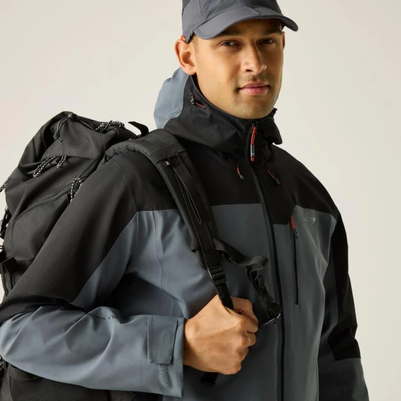 Férfi esőkabát 10000 mm vízálló, Anyag:, Isotex 10000 vízálló és légáteresztő ripstop szövet 100% poliészter, Isotex 10000 vízálló és légáteresztő stretch szövet 165 g/m?, újrahasznosított 100% poliészter, Tulajdonságok:, Újrahasznosított anyagokból készült fenntartható és környezettudatos választás, Lélegző kialakítás 10,000 g/m?/24 óra légáteresztő képesség, Tartós vízlepergető bevonat extra védelem a nedvesség ellen, Teljesen vízálló, ragasztott varrásokkal maximális vízállóság, Hálós bélés jobb szellőzés és komfort, Beépített technikai drótperemes kapucni állítórendszerrel stabil illeszkedés és extra védelem, 2 cipzáras alsó zseb és 1 cipzáras mellzseb biztonságos tárolási lehetőség, Belső cipzáras biztonsági zseb értékek védett tárolása, Állítható mandzsetta testreszabható illeszkedés, Állítható rugalmas zsinórral ellátott szegély fokozott komfort és szélvédelem, Ideális választás túrázáshoz, szabadtéri sportokhoz és változékony időjárási körülményekhez.
