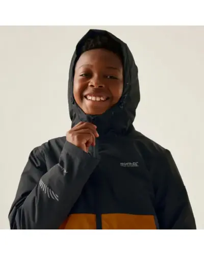 Gyerek bélelt vízálló kabát, Gyerek vízálló és lélegző kabát puha polárbéléses kényelemmel – meleg és biztonságos minden időben, Ez a gyerek Isotex 10000 kabát ideális választás, ha a kicsinek egyszerre van szüksége megbízható víz- és szélvédelemre, valamint puha, meleg érzetre. A borg polár bélés extra komfortot nyújt a hidegebb napokon, míg a 360°-os fényvisszaverő részletek gondoskodnak róla, hogy rossz látási viszonyok között is jól látható maradjon., Anyag: 100% poliészter, Isotex 10000 – 110 g/m?, Légáteresztés: 10 000 g/m?/24 óra, Vízlepergető felületkezelés, Puha borg polár bélés a meleg és kényelmes viseletért, Rögzített kapucni fix húzózsinórral, 2 cipzáras alsó zseb, Belső viharmandzsetta a szél kizárására, 360°-os fényvisszaverő részletek a jobb láthatóságért, Nyomtatott névcímke (8 éves korig), Újrahasznosított anyagokból készült – környezettudatos választás, Ideális iskolába, kirándulásokra és minden kültéri programra, amikor a gyereknek szárazon, melegen és biztonságban kell maradnia.
