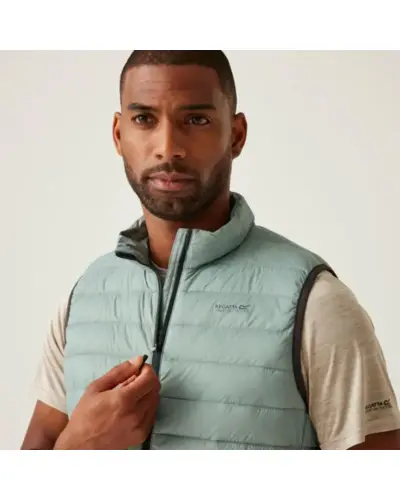 Férfi mellény, Könnyû 20d poliamid anyag, Tartós vízlepergető felület, Feather Free – prémium minőségû újrahasznosított szintetikus pehely szigetelés, Könnyû töltet, Könnyen összenyomható, 2 cipzáras alsó zseb, rugalmas szegélyek, saját zsákba csomagolható