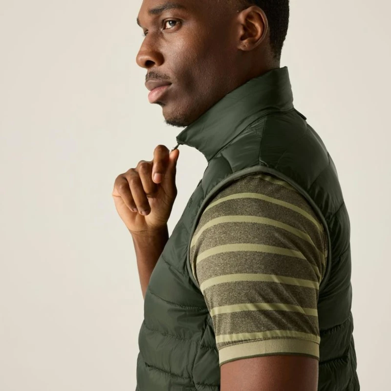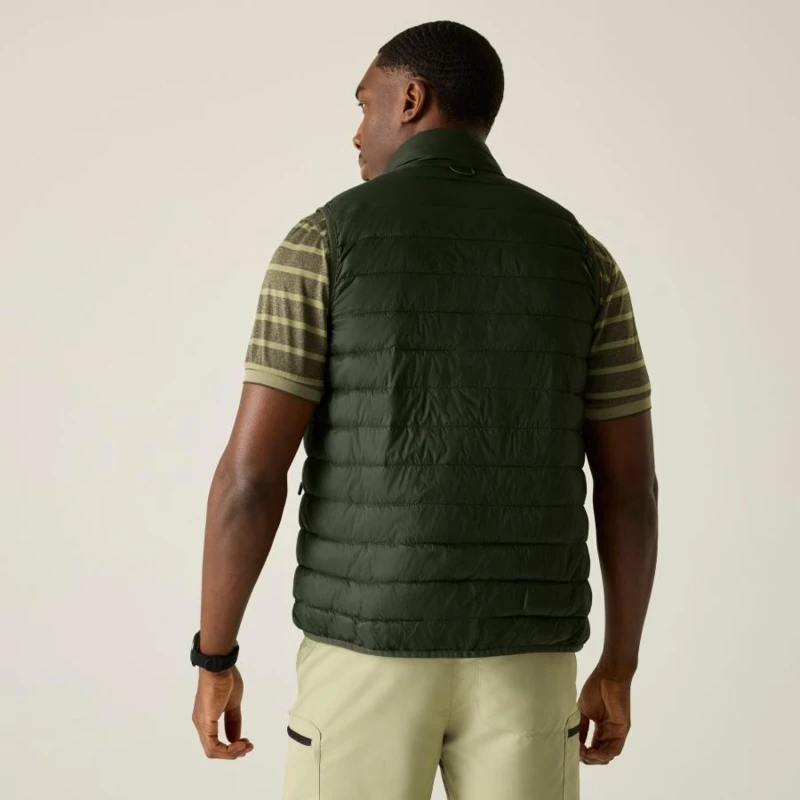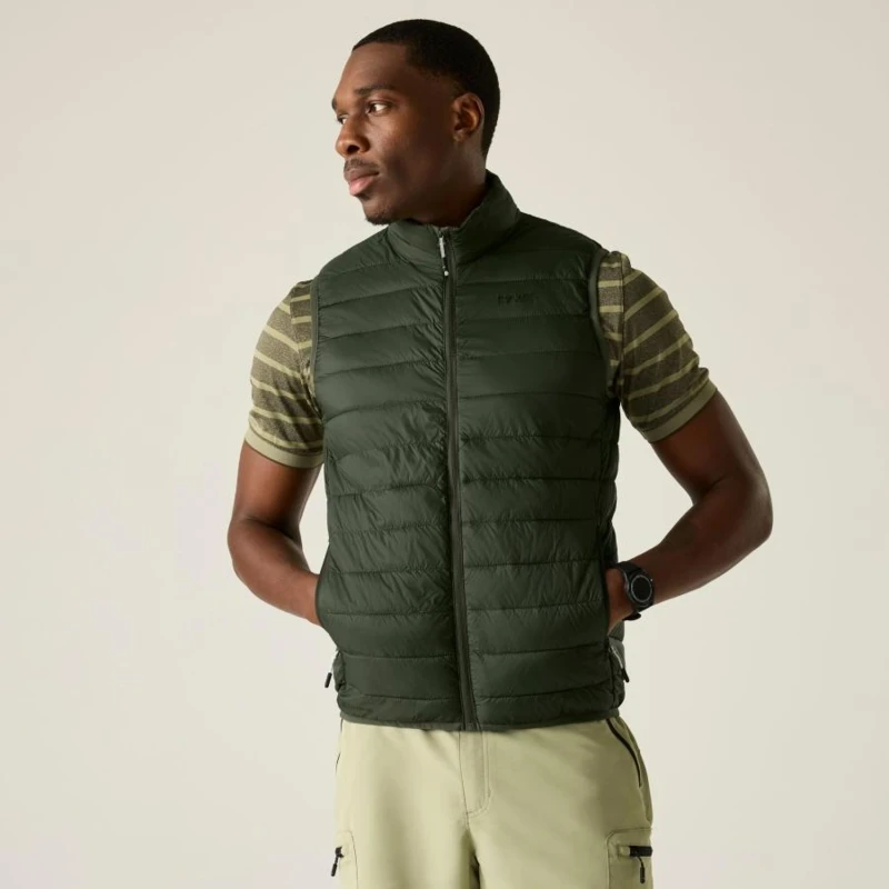 Férfi mellény, Könnyû 20d poliamid anyag, Tartós vízlepergető felület, Feather Free prémium minőségû újrahasznosított szintetikus pehely szigetelés, Könnyû töltet, Könnyen összenyomható, 2 cipzáras alsó zseb, rugalmas szegélyek, saját zsákba csomagolható