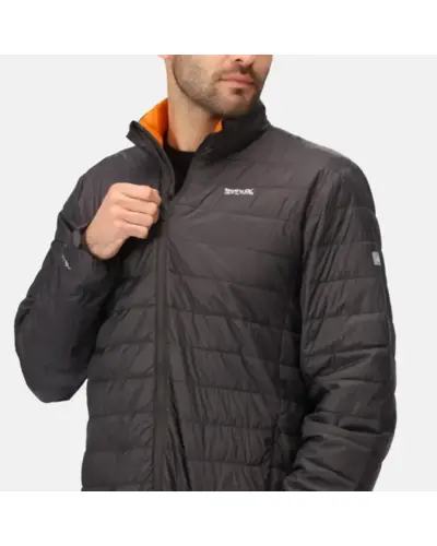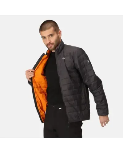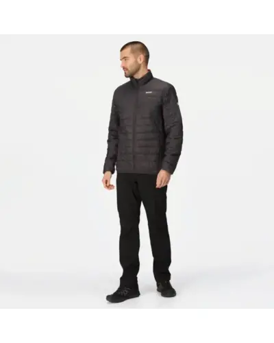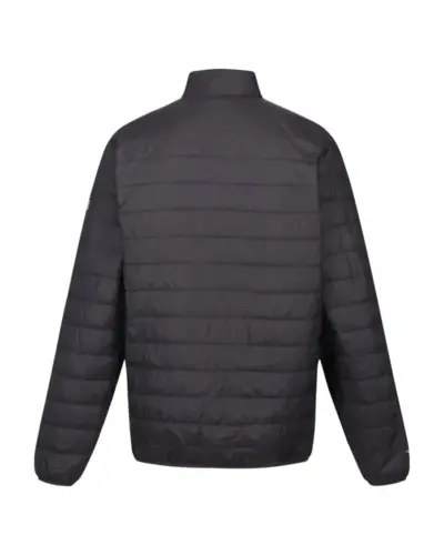 férfi kabát, Könnyû, 20D poliamid anyag, Tartós víztaszító felület, Újrahasznosított, tollhatású, pehelytapintású töltet, Kb. 5db 500ml-es mûagyag palackból készült, újrahasznosított töltet, Könnyû töltet, Könnyen összenyomható, Két cipzáros zseb az alján, Rugalmas szélû mandzsetta és alsó szegély, Elcsomagolható