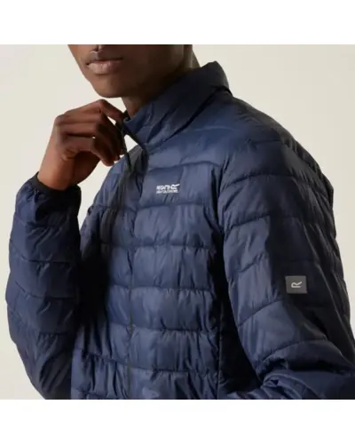 Férfi steppelt kabát, Könnyû 20d poliamid anyag, Tartós vízlepergető felület, Feather Free – prémium minőségû újrahasznosított szintetikus pehely szigetelés, Könnyû töltet, Könnyen összenyomható, 2 cipzáras alsó zseb, rugalmas szegélyek, saját zsákba csomagolható