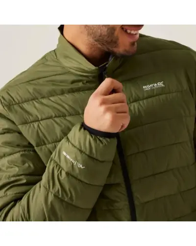 Férfi steppelt kabát, Könnyû 20d poliamid anyag, Tartós vízlepergető felület, Feather Free – prémium minőségû újrahasznosított szintetikus pehely szigetelés, Könnyû töltet, Könnyen összenyomható, 2 cipzáras alsó zseb, rugalmas szegélyek, saját zsákba csomagolható