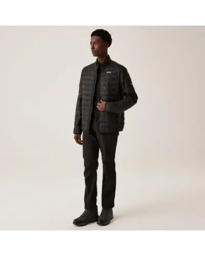 Férfi steppelt kabát, Könnyû 20d poliamid anyag, Tartós vízlepergető felület, Feather Free – prémium minőségû újrahasznosított szintetikus pehely szigetelés, Könnyû töltet, Könnyen összenyomható, 2 cipzáras alsó zseb, rugalmas szegélyek, saját zsákba csomagolható