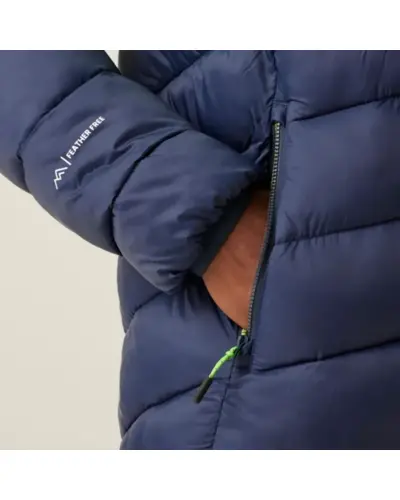 Férfi steppelt kabát, Könnyû 20D poliamid szövet: Tartós és könnyû, amely kényelmet és védelmet nyújt., Antibakteriális kezelés: Segít fenntartani a frissességet és higiéniát., Tartós vízlepergető bevonat: Védelmet nyújt nedves körülmények között, szárazon tart., Közepes súlyú Feather Free prémium újrahasznosított szintetikus pehelyszigetelés: , Meleget biztosít állati eredetû termékek használata nélkül, környezetbarát., Fix kapucni: Kényelmes és biztonságos illeszkedést biztosít a fej védelmére., Középső elülső cipzár vízelvezető csatornával: Megakadályozza a víz bejutását a cipzár mentén., 2 cipzáras alsó zseb: Biztonságos tárolást nyújt kisebb tárgyak számára., Rugalmas szegély a kapucni nyílásánál, mandzsettáknál és szegélynél: , Szoros illeszkedést biztosít, hogy bent tartsa a meleget és kint a huzatot., Ez a ruhadarab a magas funkcionalitás, a kényelem és a környezetbarát kialakítás tökéletes , kombinációja, különféle szabadtéri tevékenységekhez ideális.