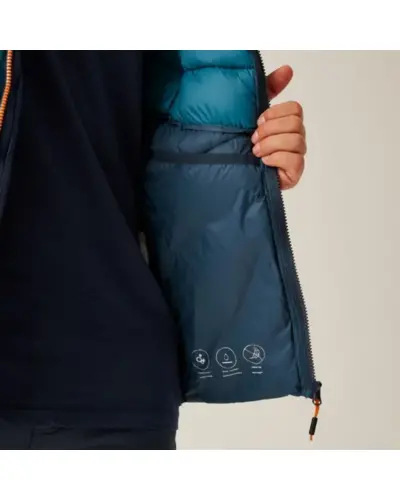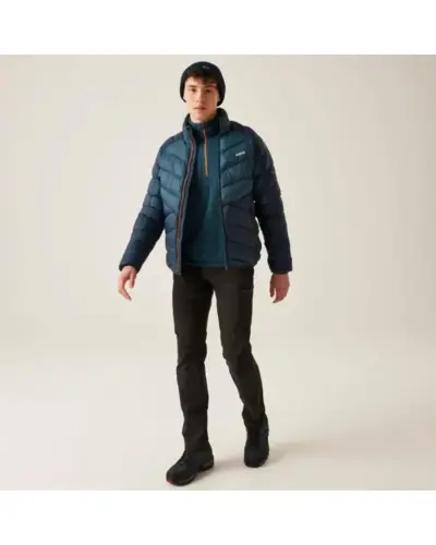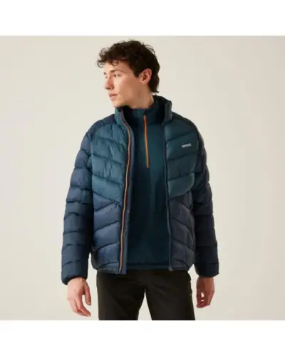Férfi steppelt kabát, Könnyû 20D poliamid szövet: Tartós és könnyû, amely kényelmet és védelmet nyújt., Antibakteriális kezelés: Segít fenntartani a frissességet és higiéniát., Tartós vízlepergető bevonat: Védelmet nyújt nedves körülmények között, szárazon tart., Közepes súlyú Feather Free prémium újrahasznosított szintetikus pehelyszigetelés: , Meleget biztosít állati eredetû termékek használata nélkül, környezetbarát., Fix kapucni: Kényelmes és biztonságos illeszkedést biztosít a fej védelmére., Középső elülső cipzár vízelvezető csatornával: Megakadályozza a víz bejutását a cipzár mentén., 2 cipzáras alsó zseb: Biztonságos tárolást nyújt kisebb tárgyak számára., Rugalmas szegély a kapucni nyílásánál, mandzsettáknál és szegélynél: , Szoros illeszkedést biztosít, hogy bent tartsa a meleget és kint a huzatot., Ez a ruhadarab a magas funkcionalitás, a kényelem és a környezetbarát kialakítás tökéletes , kombinációja, különféle szabadtéri tevékenységekhez ideális.