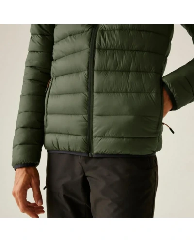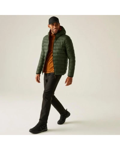Férfi steppelt kabát, Könnyû 20d poliamid anyag, Tartós vízlepergető felülettel, Feather Free - prémium szintetikus pehelyszigetelés, 2 cipzáras alsó zseb, fix kapucni, rugalmas szegélyek