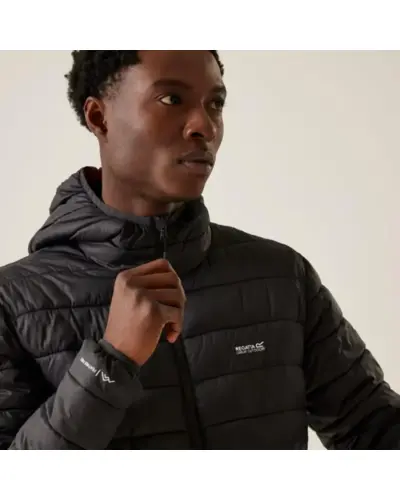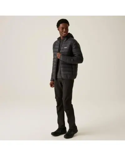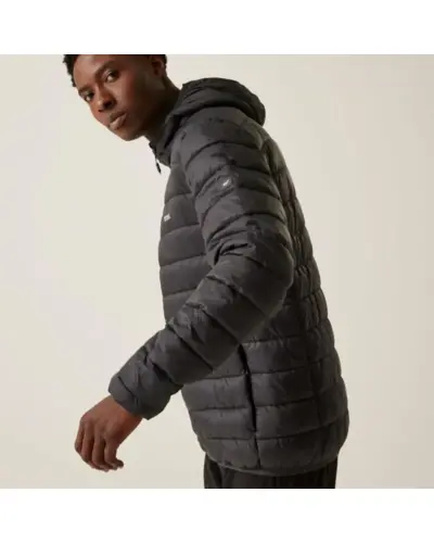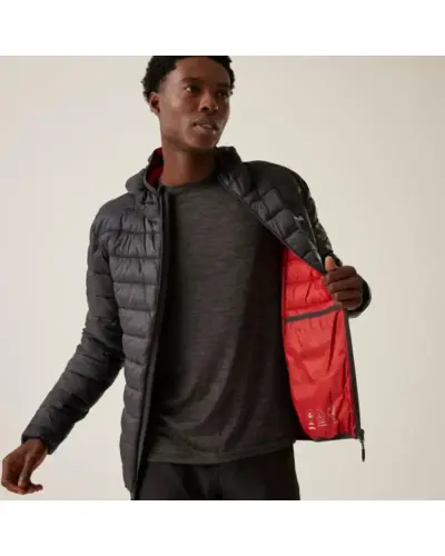 Férfi steppelt kabát, Könnyû 20d poliamid anyag, Tartós vízlepergető felülettel, Feather Free - prémium szintetikus pehelyszigetelés, 2 cipzáras alsó zseb, fix kapucni, rugalmas szegélyek