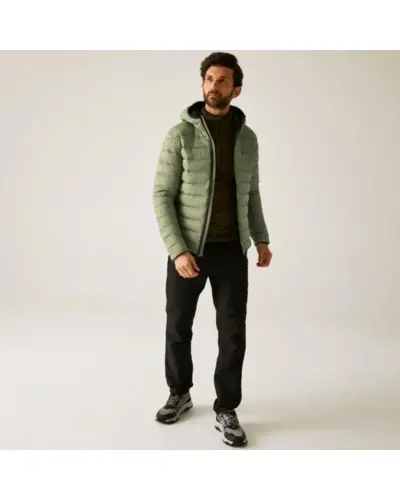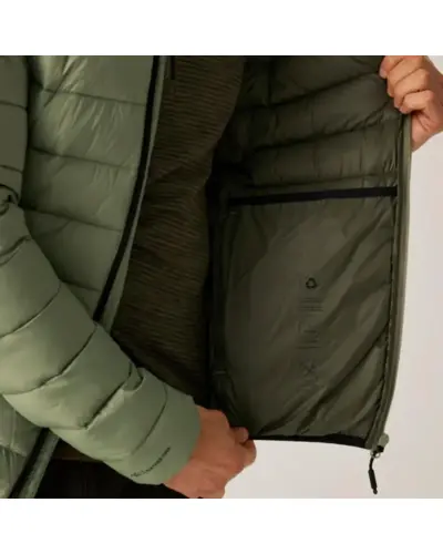 Férfi steppelt kabát, Könnyû 20d poliamid anyag, Tartós vízlepergető felülettel, Feather Free - prémium szintetikus pehelyszigetelés, 2 cipzáras alsó zseb, fix kapucni, rugalmas szegélyek