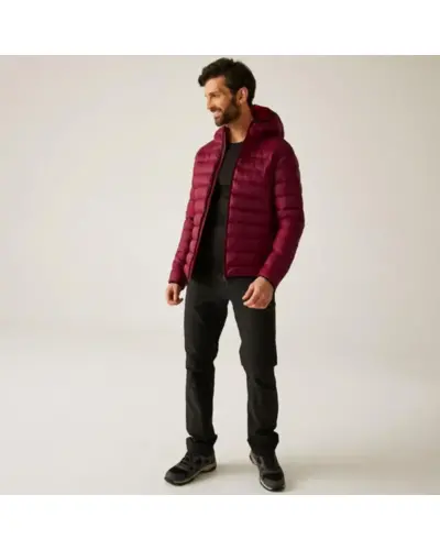 Férfi steppelt kabát, Könnyû 20d poliamid anyag, Tartós vízlepergető felülettel, Feather Free - prémium szintetikus pehelyszigetelés, 2 cipzáras alsó zseb, fix kapucni, rugalmas szegélyek