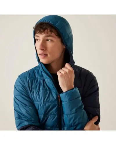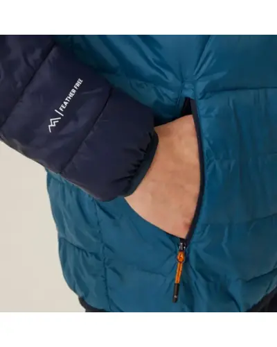 Férfi könnyû steppelt kabát, Könnyû 20D poliamid szövet: Tartós és könnyû anyag, amely kényelmet és védelmet nyújt., Tartós vízlepergető bevonat: Védelmet biztosít nedves körülmények között, szárazon tart., Könnyû Feather Free prémium újrahasznosított szintetikus pehelyszigetelés: , Meleget biztosít állati eredetû anyagok nélkül, környezetbarát megoldás., Fix kapucni: Kényelmes és biztonságos illeszkedést biztosít a fej védelmére., 2 cipzáras alsó zseb: Biztonságos tárolási lehetőséget nyújt kisebb tárgyak számára., Rugalmas szegély a kapucni nyílásánál, mandzsettáknál és szegélynél: , Szoros illeszkedést biztosít, hogy bent tartsa a meleget és kint a huzatot., Ez a ruhadarab kiváló választás lehet különféle szabadtéri tevékenységekhez, mivel magas , funkcionalitással, kényelemmel és környezetbarát kialakítással rendelkezik.