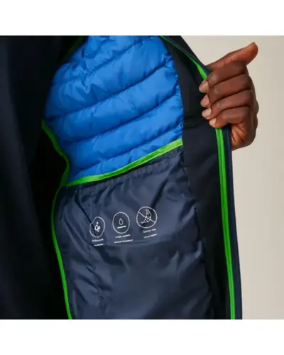 Férfi steppelt kabát, Könnyû 20D poliamid szövet: Tartós és könnyû, kényelmet és védelmet nyújt., Extol Stretch panel betétek: Újrahasznosított 90% poliészterből és, 10% elasztánból készültek, rugalmasságot és könnyed mozgást biztosítanak., Közepes súlyú Feather Free prémium újrahasznosított szintetikus pehelyszigetelés:, Meleget biztosít állati eredetû termékek használata nélkül, környezetbarát., Antibakteriális kezelés: Segít fenntartani a frissességet és higiéniát., Tartós vízlepergető bevonat: Szárazon tart nedves körülmények között., Fix rugalmas kapucni: Szorosan illeszkedik a fejre, fokozva a védelmet , Reach Technológia: Hónalj betétek biztosítják a maximális mozgástartományt a korlátlan kar mozgást, 2 cipzáras alsó zseb: Biztonságos tárolást nyújt kisebb tárgyak számára., Rugalmas szegély a kapucni nyílásánál, mandzsettáknál és szegélynél: , Szoros illeszkedést biztosít, hogy bent tartsa a meleget és kint a huzatot., Ez az anyagok és a kialakítási elemek kombinációja rendkívül funkcionális, kényelmes és különféle , szabadtéri tevékenységekhez alkalmas ruhadarabot eredményez
