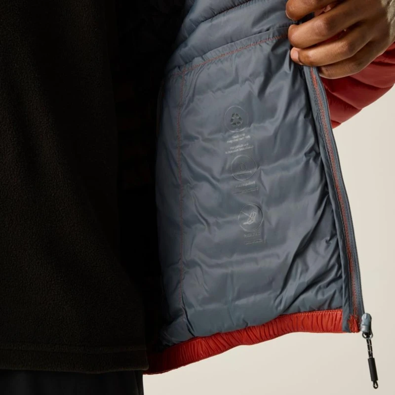 Férfi könnyû vékony steppelt kabát, Anyag:, 38 g/m? könnyû 100% poliamid mikro ripstop szövet, magasfényû felülettel, Poliamid bélés a kényelem és tartósság érdekében, Tulajdonságok:, Tartós vízlepergető bevonat védelmet nyújt enyhe eső és nedvesség ellen, Feather Free prémium újrahasznosított szintetikus pehelyszigetelés melegen tart, állati eredetû tollak nélkül, Közepes súlyú töltet 140 g/m? optimális hőszigetelés és komfort, Beépített kapucni extra védelem és meleg, Kontrasztos szegélyrész a cipzár mentén stílusos részletek, 2 cipzáras alsó zseb biztonságos és praktikus tárolási lehetőség, Újrahasznosított anyagokból készült fenntartható és környezettudatos választás, Ideális választás hideg időjáráshoz, szabadtéri tevékenységekhez és mindennapi viselethez.