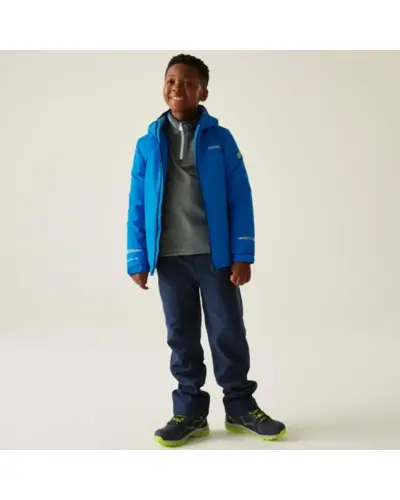 Gyerek bélelt vízálló kabát, Gyerek vízálló és lélegző kabát Thermoguard szigeteléssel – meleg, kényelmes és jól látható minden kalandban, Ez a gyerek Isotex 10000 kabát ideális választás, ha a kicsinek szárazon, melegen és kényelmesen kell maradnia hidegebb, szeles vagy esős időben. A Thermoguard újrahasznosított szigetelés könnyû, mégis hatékony hőmegtartást biztosít, a teljesen ragasztott varrások pedig megbízható vízvédelmet nyújtanak. A 360°-os fényvisszaverő részletek növelik a biztonságot borús időben és szürkületkor., Anyag: 100% poliészter, Isotex 10000 – 110 g/m?, Légáteresztés: 10 000 g/m?/24 óra, Thermoguard újrahasznosított szintetikus szigetelés – 120 g/m?, Vízlepergető felületkezelés, Teljesen ragasztott varrások a teljes vízállóságért, Rögzített, gumírozott kapucni, 2 cipzáras alsó zseb, Állítható mandzsetta és húzózsinóros alsó szegély (7 éves kortól), 360°-os fényvisszaverő részletek a jobb láthatóságért, Nyomtatott névcímke (8 éves korig), Újrahasznosított anyagokból készült – fenntartható választás, Tökéletes iskolába, kirándulásokra vagy mindennapi kültéri programokra, amikor a gyereknek védelemre és kényelemre van szüksége az időjárással szemben.