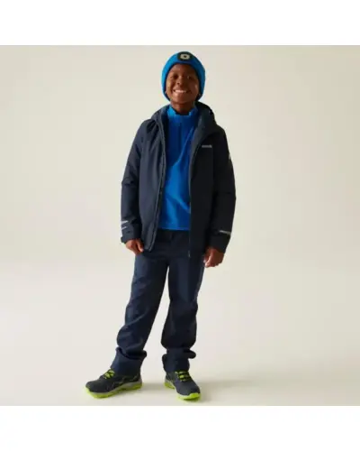 Gyerek bélelt vízálló kabát, Gyerek vízálló és lélegző kabát Thermoguard szigeteléssel – meleg, kényelmes és jól látható minden kalandban, Ez a gyerek Isotex 10000 kabát ideális választás, ha a kicsinek szárazon, melegen és kényelmesen kell maradnia hidegebb, szeles vagy esős időben. A Thermoguard újrahasznosított szigetelés könnyû, mégis hatékony hőmegtartást biztosít, a teljesen ragasztott varrások pedig megbízható vízvédelmet nyújtanak. A 360°-os fényvisszaverő részletek növelik a biztonságot borús időben és szürkületkor., Anyag: 100% poliészter, Isotex 10000 – 110 g/m?, Légáteresztés: 10 000 g/m?/24 óra, Thermoguard újrahasznosított szintetikus szigetelés – 120 g/m?, Vízlepergető felületkezelés, Teljesen ragasztott varrások a teljes vízállóságért, Rögzített, gumírozott kapucni, 2 cipzáras alsó zseb, Állítható mandzsetta és húzózsinóros alsó szegély (7 éves kortól), 360°-os fényvisszaverő részletek a jobb láthatóságért, Nyomtatott névcímke (8 éves korig), Újrahasznosított anyagokból készült – fenntartható választás, Tökéletes iskolába, kirándulásokra vagy mindennapi kültéri programokra, amikor a gyereknek védelemre és kényelemre van szüksége az időjárással szemben.
