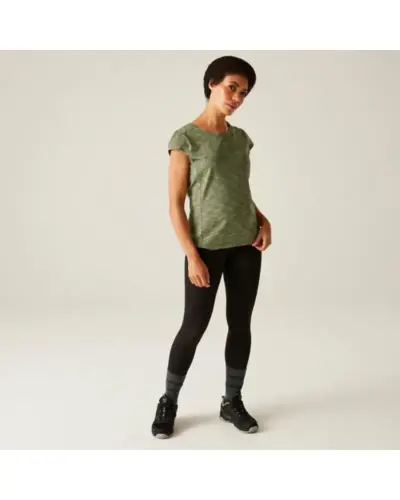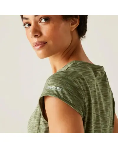 női gyorsan száradó póló, Gyorsan száradó, rugalmas 88% poliészter 12% elasztán anyag (színtől függő anyagösszetétel), Gyorsan száradó, rugalmas 90% poliészter 10% elasztán anyag (színtől függő anyagösszetétel), Jó nedvszívó teljesítmény