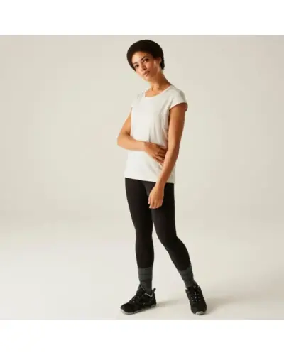női gyorsan száradó póló, Gyorsan száradó, rugalmas 88% poliészter 12% elasztán anyag (színtől függő anyagösszetétel), Gyorsan száradó, rugalmas 90% poliészter 10% elasztán anyag (színtől függő anyagösszetétel), Jó nedvszívó teljesítmény