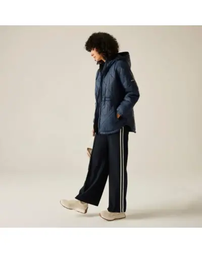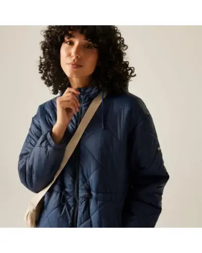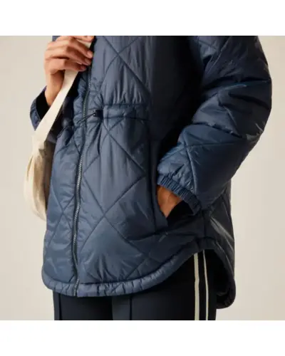 Női steppelt kabát, Női könnyû, meleg kabát – sportos elegancia a hideg napokra, Ez a könnyû, mégis melegen tartó kabát ideális választás a hûvös őszi és téli napokra. A vízlepergető bevonat és a Warmloft szintetikus pehelyhatású szigetelés biztosítja a száraz és komfortos érzetet, míg a nőies, ívelt szegély és a szabható derékrész stílusos megjelenést nyújt., Anyag: 100% poliamid könnyû 20d szövet – 37 g/m?, Bélés: 100% poliészter taft, Szigetelés: újrahasznosított Warmloft pehelyhatású – 160 g/m?, Kapucni: húzózsinórral állítható, fix, Derék: állítható, rugalmas húzózsinórral, Zsebek: 2 alsó, rejtett nyílású zseb, Mandzsetta: rugalmas a jobb illeszkedésért, Szabás: ívelt alsó szegély nőies vonalvezetéssel, Fenntarthatóság: újrahasznosított anyagok felhasználásával készült, ? Ajánlott: városi viselethez, mindennapi használatra, enyhébb téli és őszi időjáráshoz, ?? Könnyû, meleg és környezettudatos – stílusos kísérő a hideg napokon.