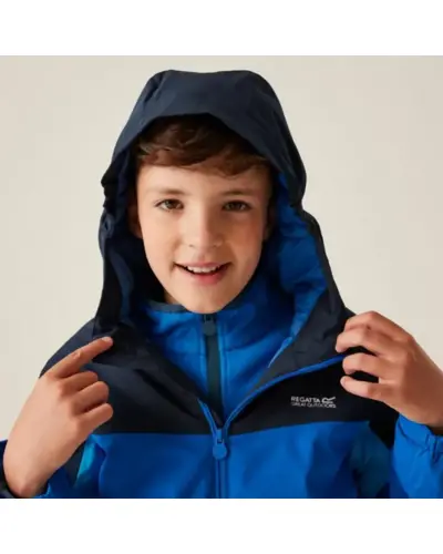 Gyere bélelt 15000 vízálló és lélegző kabát, Anyag: Isotex 15000 100% poliészter stretch szövet., Lélegzőképesség: 10,000g/m?/24 óra, ami hatékony szellőzést és nedvességkezelést biztosít., Vízlepergetés: Tartós vízlepergető bevonattal ellátott., Varratok: Teljes vízállóságot biztosító ragasztott varratok., Bélés: Kényelmes, párnázott bélés., Szigetelés: Közepes vastagságú, újrahasznosított Thermoguard szigetelés, amely melegen tart., Kapucni: Beépített kapucni elasztikus szegéllyel., Cipzárvédő: A kényelem érdekében cipzárvédővel ellátott., Mandzsetták: Állítható mandzsetták a személyre szabott illeszkedésért., Zsebek: Két cipzáras alsó zseb., Állítható szegély: Állítható rugalmas szegély 7 éves kortól., Biztonsági elemek: 360 fokos fényvisszaverő csíkok a jobb láthatóság és biztonság érdekében., Nyomtatott névcímke: Elérhető nyomtatott névcímkével 8 éves korig., Ez a kabát kiválóan alkalmas különböző időjárási körülmények között, biztosítva a meleget, vízállóságot, és a megfelelő szellőzést, miközben figyelembe veszi a környezettudatos vásárlói igényeket is.