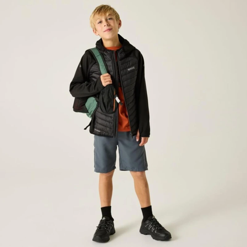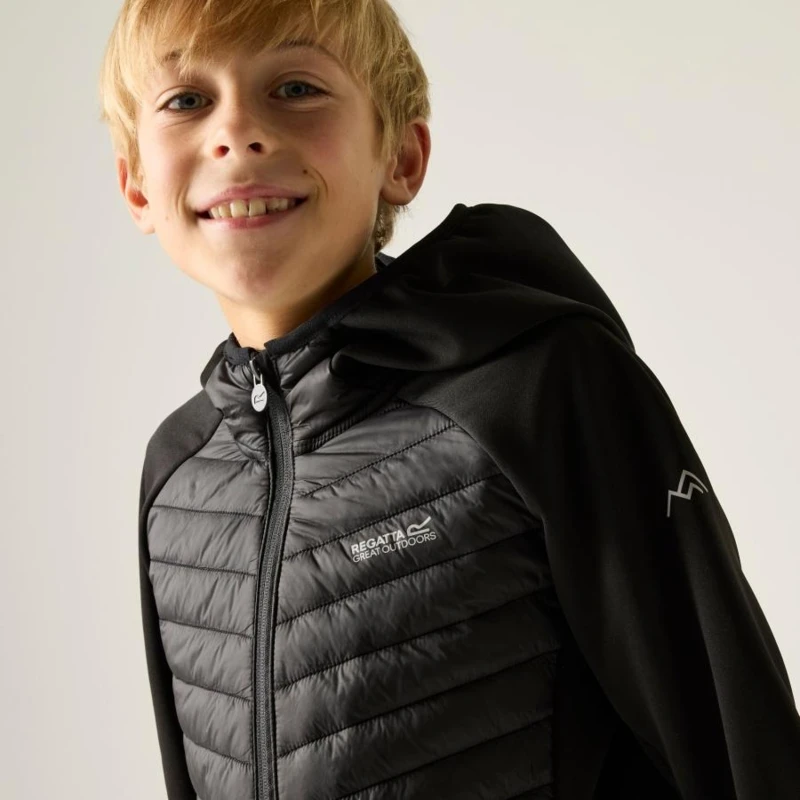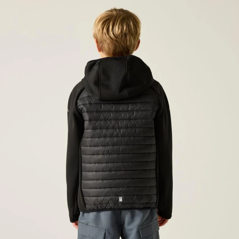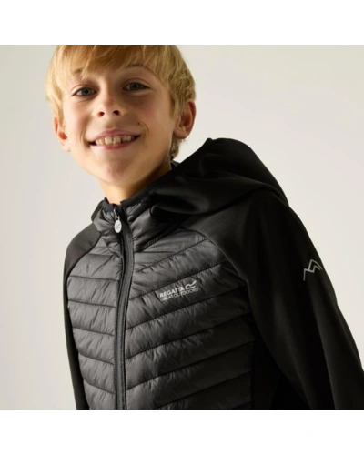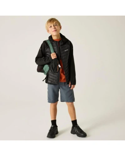 Gyerek hybrid felső, Prémium gyerek hibrid szigetelt kabát – Warmloft down-touch, Extol Stretch panelek, 120 g/m?, Ez a gyerek technikai hibrid kabát rugalmas Extol Stretch betétekkel és ultrakönnyû poliamid külső anyaggal készült. A törzsrészen tartós vízlepergető bevonattal ellátott 20D poliamid anyag biztosít védelmet, míg a 120 g/m? súlyú, újrahasznosított Warmloft down-touch szintetikus szigetelés megbízható hőkomfortot nyújt. A könnyen összenyomható kialakítás ideális utazáshoz és réteges öltözködéshez., Főbb jellemzők:, Extol Stretch betétek 90% poliészter / 10% elasztán összetételben, 235 g/m?, 100% poliamid ultrakönnyû 20D külső anyag, 37 g/m?, Tartós vízlepergető bevonat a törzsrészen, Szigetelés súlya: 120 g/m?, Újrahasznosított Warmloft down-touch szintetikus pehelyszigetelés, Könnyen összenyomható konstrukció, Beépített kapucni, Rugalmas szegély a kapucninál, mandzsettánál és az alsó szegélynél, 2 alsó cipzáras zseb, Cipzárvédő a fokozott komfortért, Nyomtatott névcímke 8 éves korig, Fényvisszaverő részletek, Ajánlott: Gyerek hibrid szigetelt kabátként ideális iskolába, kiránduláshoz, túrázáshoz és aktív szabadtéri programokhoz hûvösebb időben. Kiváló választás, ha fontos a meleg szigetelés, a mozgásszabadság és a könnyû csomagolhatóság., Fenntarthatóság: Az újrahasznosított szintetikus szigetelés csökkenti a környezeti terhelést, miközben strapabíró és hosszú élettartamú megoldást kínál a mindennapi használatra.