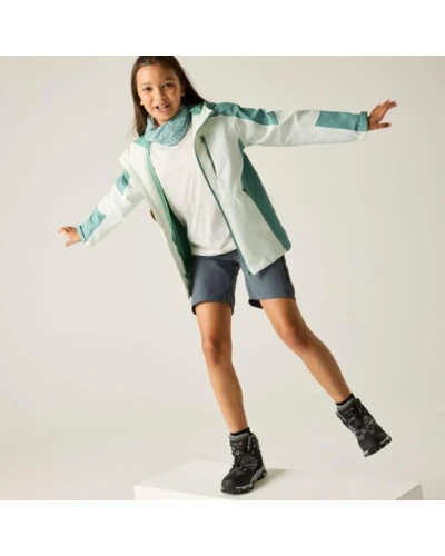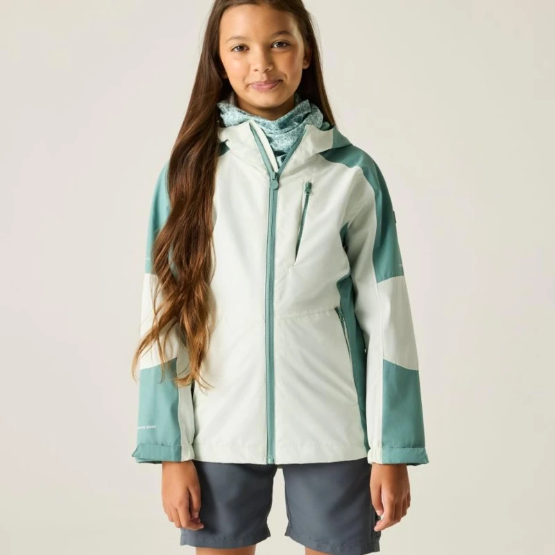 Gyerek esőkabát 10.000 mm vízálló, Vízálló és lélegző Isotex 10000 újrahasznosított poliészter anyag, Légáteresztő képesség: 10 000 g/m?/24 óra, ragasztott varratok, a varrásnál leragasztva, hogy a tûpöttyöknél se ázzon át, Tartós vízlepergető felület, Hálós béléssel, fix kapucni, 2 cipzáras alsó zseb és 1 cipzáras mellzseb, Állítható mandzsetta, Állítható szegély 7 év felett, 360-as fényvisszaverő betétek, Nyomtatott névcímke (8 éves korig)