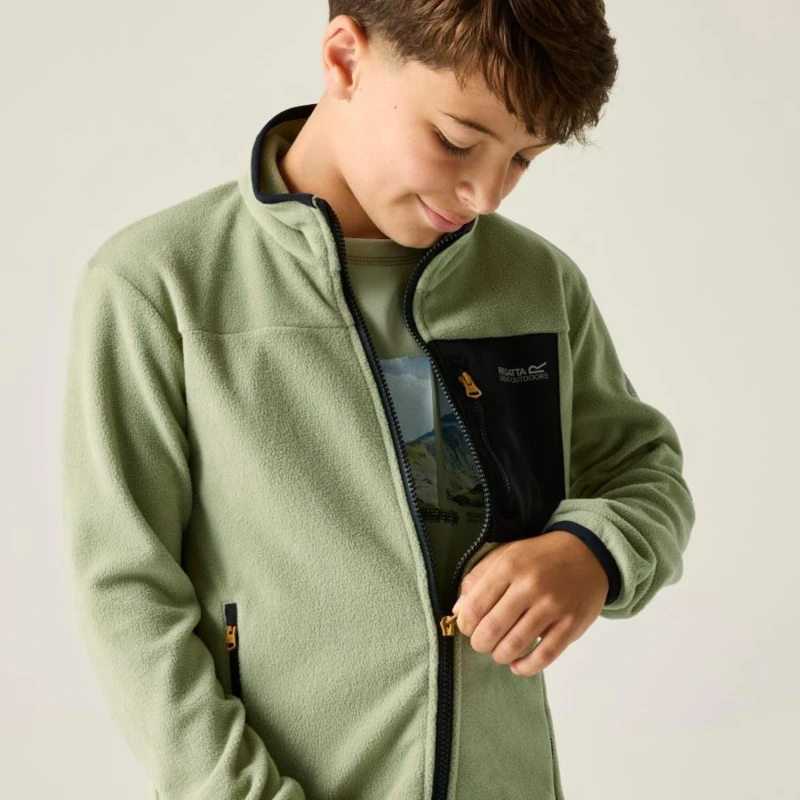 Gyerek polár pulóver, Prémium gyerek polár pulóver – Symmetry fleece, 170 g/m?, cipzáras zsebekkel, Ez a gyerek polár felső 100% poliészter Symmetry fleece anyagból készült, 170 g/m? súlyban. Az egyik oldalon bolyhozott, a másikon bolyhosodás-gátló (anti pill) kialakítás hosszabb távon is esztétikus megjelenést és kellemes komfortot biztosít. A rugalmas szegélyezés és a cipzáras zsebek praktikussá teszik a mindennapi viselethez., Főbb jellemzők:, 100% poliészter Symmetry fleece, 170 g/m?, Egyik oldalán bolyhozott, másik oldalán anti pill kivitel, Rugalmas szegély a gallérnál, mandzsettánál és az alsó szegélynél, 2 alsó cipzáras zseb, 1 cipzáras mellzseb, Könnyû, jól rétegezhető konstrukció, Ajánlott: Gyerek polár pulóverként ideális iskolába, kiránduláshoz, túrázáshoz és mindennapi viselethez hûvösebb időben. Kiváló középréteg kabát alá vagy önálló felsőként átmeneti időszakban., Fenntarthatóság: A tartós poliészter fleece anyag ellenáll a gyakori mosásnak és aktív használatnak, hosszú élettartamot biztosítva a mindennapok során.