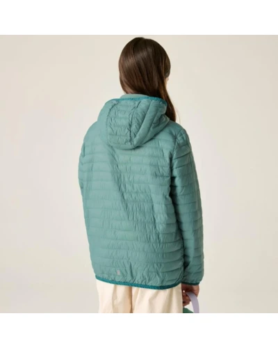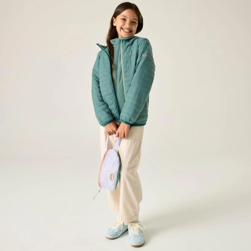Gyerek könnyû steppelt kabát, Prémium gyerek könnyû szigetelt kabát Feather Free újrahasznosított töltet, vízlepergető kivitel, 37 g/m?, Ez a gyerek technikai kabát ultrakönnyû 20D poliamid külső anyagból készült, 37 g/m? súlyban, könnyû töltettel és tartós vízlepergető bevonattal. A Feather Free prémium, újrahasznosított szintetikus pehelyszigetelés megbízható hőkomfortot biztosít kis tömeg mellett. A rugalmas szegélyezések és a beépített kapucni kényelmes, stabil illeszkedést nyújtanak aktív használat során., Főbb jellemzők:, Ultrakönnyû 20D poliamid külső anyag, 37 g/m?, Könnyû szigetelő töltet, Tartós vízlepergető bevonat, Feather Free prémium újrahasznosított szintetikus pehelyszigetelés, Beépített kapucni elasztikus kialakítással, Rugalmas szegély a kapucninál, mandzsettánál és az alsó szegélynél, 2 rejtett cipzáras kézmelegítő zseb, Cipzárvédő a fokozott komfortért, Nyomtatott névcímke 8 éves korig, Fényvisszaverő részletek, Ajánlott: Gyerek szigetelt kabátként ideális iskolába, kiránduláshoz és mindennapi szabadtéri viselethez hûvösebb időben. Kiváló választás átmeneti időszakban, amikor fontos a könnyû súly és a megbízható hőszigetelés., Fenntarthatóság: Az újrahasznosított szintetikus szigetelés csökkenti a környezeti terhelést, miközben tartós és hosszú élettartamú konstrukciót biztosít aktív használat mellett is.