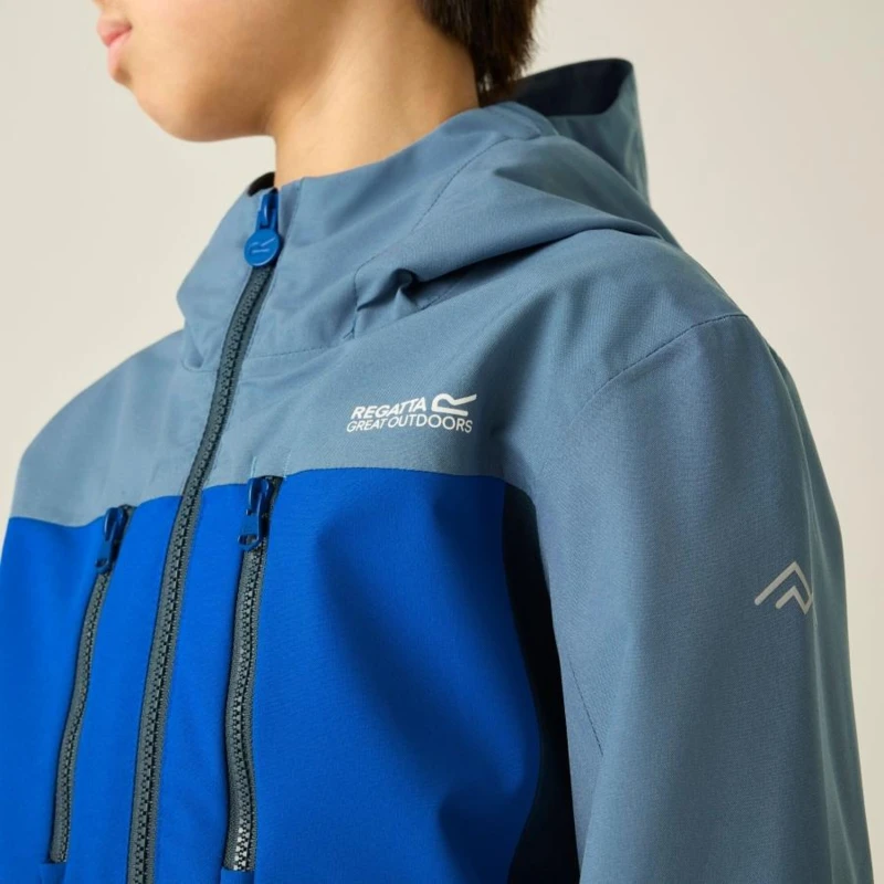 Gyerek esőkabát 20000 mm, Prémium gyerek vízálló technikai kabát – ISOTEX 20000 stretch, 20 000 g/m?/24h légáteresztés, újrahasznosított anyag, Ez a gyerek technikai kabát vízálló és légáteresztő ISOTEX 20000 újrahasznosított 100% poliészter stretch anyagból készült, 88 g/m? súlyban. A kiemelkedő, 20 000 g/m?/24 óra légáteresztési teljesítmény aktív használat során is hatékony párakezelést biztosít. A ragasztott varratok és a tartós vízlepergető bevonat teljes körû védelmet nyújtanak esős, szeles időben, míg a technikai kapucni és a fényvisszaverő részletek fokozzák a funkcionalitást., Főbb jellemzők:, Vízálló, légáteresztő ISOTEX 20000 újrahasznosított 100% poliészter stretch anyag, 88 g/m?, Légáteresztési érték: 20 000 g/m?/24 óra, Ragasztott varratok a teljes vízálló védelemért, Tartós vízlepergető bevonat, 100% poliészter hálós bélés, taft bélésû ujjak, Beépített technikai kapucni magas gallérral és elasztikus kialakítással, 2 alsó cipzáras zseb, 2 cipzáras mellzseb, Állítható, gumizsinóros alsó szegély 7 éves kortól, Állítható mandzsetta, 360°-os fényvisszaverő részletek, Nyomtatott névcímke 8 éves korig, Ajánlott: Gyerek vízálló túrakabátként ideális iskolába, kiránduláshoz, túrázáshoz és aktív szabadtéri programokhoz változékony, csapadékos időjárási körülmények között. Kiváló választás, ha fontos a magas vízállóság, a légáteresztés és a fokozott láthatóság., Fenntarthatóság: Az újrahasznosított poliészter alapanyag csökkenti a környezeti terhelést, miközben strapabíró és hosszú élettartamú konstrukciót biztosít a mindennapi használathoz.