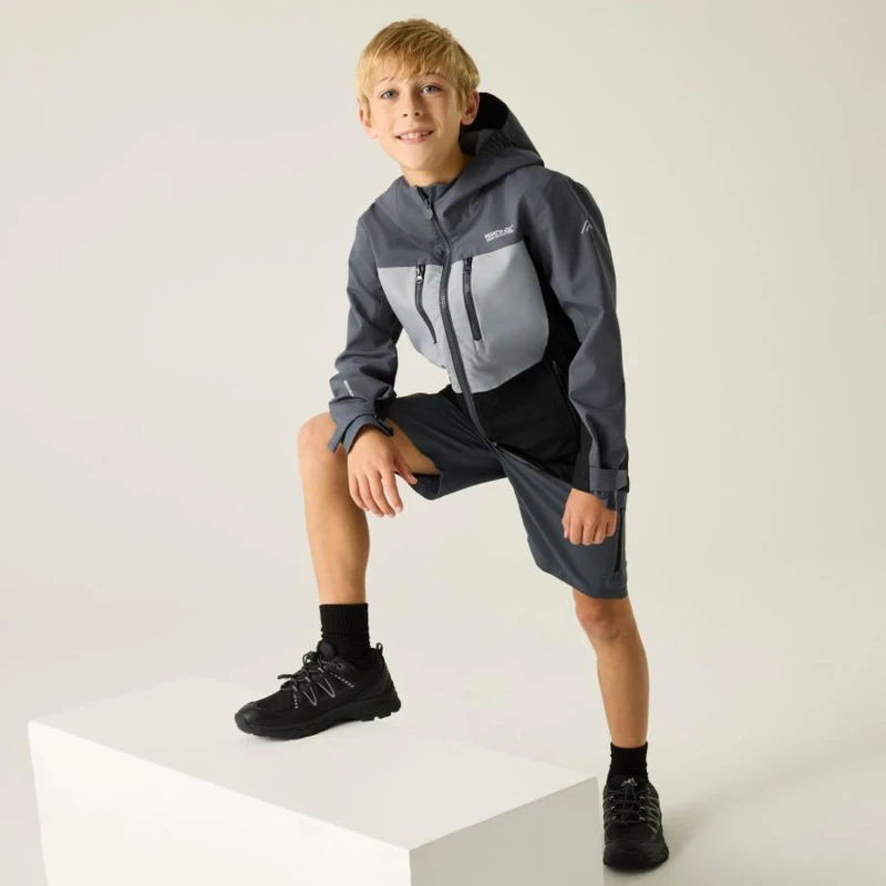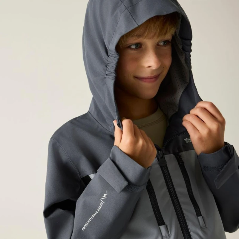 Gyerek esőkabát 20000 mm, Prémium gyerek vízálló technikai kabát – ISOTEX 20000 stretch, 20 000 g/m?/24h légáteresztés, újrahasznosított anyag, Ez a gyerek technikai kabát vízálló és légáteresztő ISOTEX 20000 újrahasznosított 100% poliészter stretch anyagból készült, 88 g/m? súlyban. A kiemelkedő, 20 000 g/m?/24 óra légáteresztési teljesítmény aktív használat során is hatékony párakezelést biztosít. A ragasztott varratok és a tartós vízlepergető bevonat teljes körû védelmet nyújtanak esős, szeles időben, míg a technikai kapucni és a fényvisszaverő részletek fokozzák a funkcionalitást., Főbb jellemzők:, Vízálló, légáteresztő ISOTEX 20000 újrahasznosított 100% poliészter stretch anyag, 88 g/m?, Légáteresztési érték: 20 000 g/m?/24 óra, Ragasztott varratok a teljes vízálló védelemért, Tartós vízlepergető bevonat, 100% poliészter hálós bélés, taft bélésû ujjak, Beépített technikai kapucni magas gallérral és elasztikus kialakítással, 2 alsó cipzáras zseb, 2 cipzáras mellzseb, Állítható, gumizsinóros alsó szegély 7 éves kortól, Állítható mandzsetta, 360°-os fényvisszaverő részletek, Nyomtatott névcímke 8 éves korig, Ajánlott: Gyerek vízálló túrakabátként ideális iskolába, kiránduláshoz, túrázáshoz és aktív szabadtéri programokhoz változékony, csapadékos időjárási körülmények között. Kiváló választás, ha fontos a magas vízállóság, a légáteresztés és a fokozott láthatóság., Fenntarthatóság: Az újrahasznosított poliészter alapanyag csökkenti a környezeti terhelést, miközben strapabíró és hosszú élettartamú konstrukciót biztosít a mindennapi használathoz.