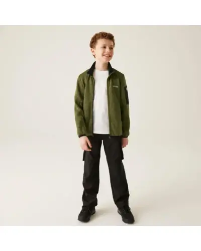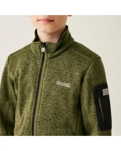 Gyerek polár felső, Újrahasznosított 250 g/m2-es 100% poliészter márga kötött hatású polár, 2 cipzáras alsó zseb és 1 cipzáras ujjzseb, Stretch kötés a mandzsettákon és a szegélyen