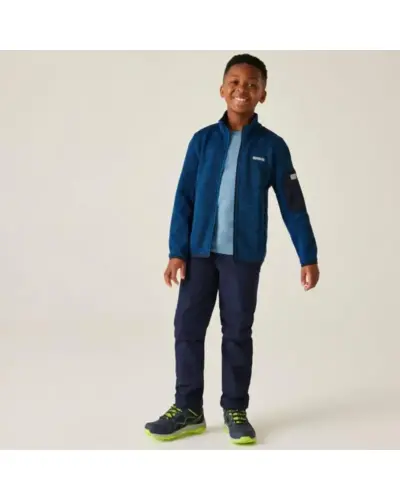 Gyerek polár pulóver, Gyerek melírozott hatású polár felső – meleg és kényelmes hétköznapi viselethez, Ez a melírozott hatású, puha polár felső ideális választás aktív gyerekeknek, akiknek fontos a kényelem és a mozgásszabadság. A 250 g/m?-es anyag melegen tart hûvösebb időben, miközben könnyû és jól szellőzik. A praktikus zsebekben minden apróság biztonságosan elfér, a fényvisszaverő részletek pedig növelik a láthatóságot., Anyag: 100% poliészter, melírozott hatású polár (250 g/m?), 2 cipzáras alsó zseb és 1 cipzáras ujjzseb, Rugalmas szegély a mandzsettán és aljon a kényelmes illeszkedésért, Fényvisszaverő részletek a jobb láthatóságért, Névjegy címke (8 éves korig), Újrahasznosított anyagból készült – környezettudatos választás, Ajánlott: iskolába, kirándulásra, kültéri játékhoz vagy sportos hétköznapokra, Meleg, praktikus és fenntartható – aktív gyerekek kedvence