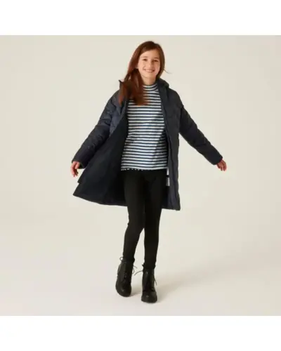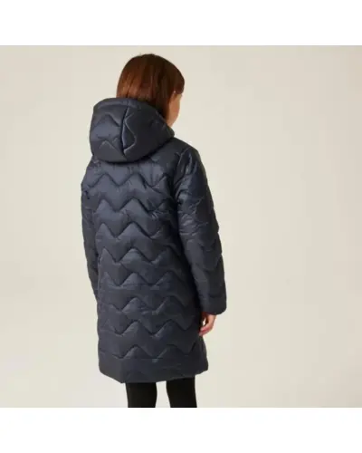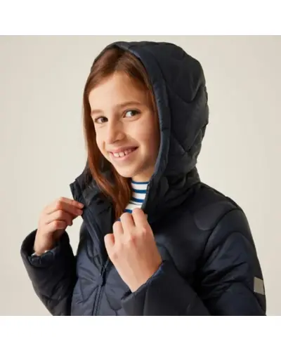 Gyerek vastag bélelt kabát, Anyag: Könnyû, 20d újrahasznosított poliamid szövet fémes felülettel, amely modern megjelenést biztosít., Vízlepergető: Tartós vízlepergető bevonattal ellátva, amely védelmet nyújt az eső és a nedvesség ellen., Szigetelés: Nehézsúlyú, újrahasznosított szintetikus Warmloft pehelytapintású szigetelés, amely hatékonyan tartja a meleget., Bélés: 100% poliészter taft bélés a kényelmes viselet érdekében., Cipzár: Kétirányú középső cipzár az elülső részen, amely lehetővé teszi a könnyû fel- és levételt, valamint a jobb szellőzést., Kapucni: Beépített kapucni a további védelem érdekében., Zsebek: Két alsó zseb, amelyek praktikus tárolási lehetőséget biztosítanak., Mandzsetták: Elasztikus mandzsetták a szorosabb illeszkedés és kényelem érdekében., Biztonság: 360 fokos fényvisszaverő csíkok a fokozott láthatóságért, különösen rossz látási viszonyok között., Nyomtatott névcímke: Nyomtatott névcímke elérhető 8 éves korig, a könnyebb azonosítás érdekében., Ez a kabát ideális választás hideg időjárási körülmények között, mivel könnyû, de meleg, vízlepergető és stílusos fémes felületével modern megjelenést kínál, miközben környezetbarát anyagokból készült.
