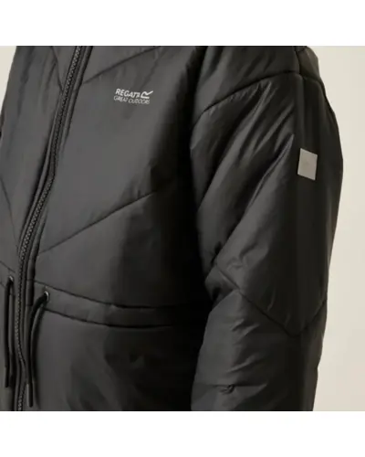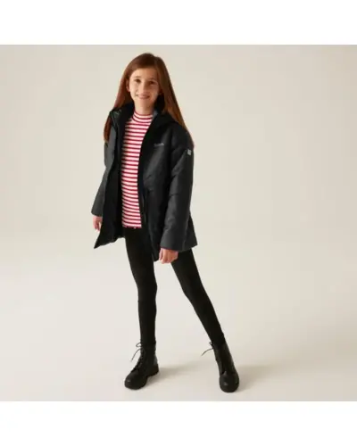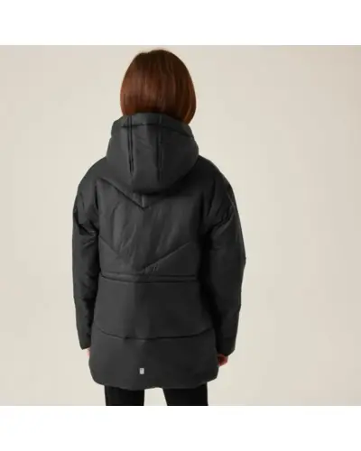 Gyerek vastag bélelt kabát, Anyag: 100% poliamid, vízálló szövet cire felülettel, amely sima, fényes megjelenést biztosít., Szigetelés: Nehézsúlyú, újrahasznosított szintetikus Warmloft pehelytapintású szigetelés, amely melegen tart hideg időben., Bélés: 100% poliészter taft bélés a kényelem érdekében., Kialakítás: Párnázott steppelt dizájn, amely esztétikus megjelenést és extra meleget biztosít., Kapucni: Beépített kapucni a hideg időjárás elleni védelem érdekében., Derék: Állítható pamut húzózsinóros derék, amely lehetővé teszi a kabát testre szabott illeszkedését., Zsebek: Két alsó zseb, amelyek praktikus tárolási lehetőséget biztosítanak., Biztonság: 360 fokos fényvisszaverő csíkok a fokozott láthatóság érdekében, különösen sötétben vagy rossz látási viszonyok között., Nyomtatott névcímke: Nyomtatott névcímke elérhető 8 éves korig, a könnyebb azonosítás érdekében., Ez a kabát ideális választás hideg és nedves időjárási körülmények között, mivel meleg és vízálló, továbbá modern és stílusos megjelenést kínál a cire felületnek és a steppelt kialakításnak köszönhetően.