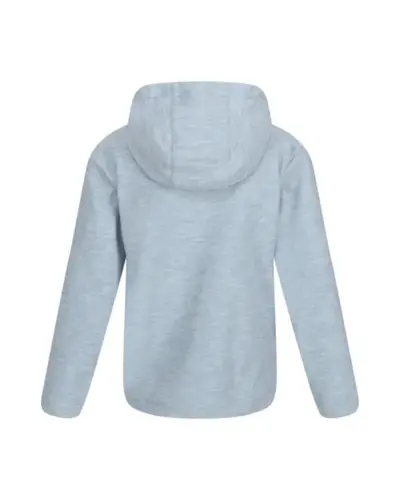 gyerek polár pulóver, 240g/m2 súlyú cirmos hatású polár, Nem-levehető kapucni, magasított, ejtett nyakkal, Rögzített húzózsinór díszítés, Két zseb az alján