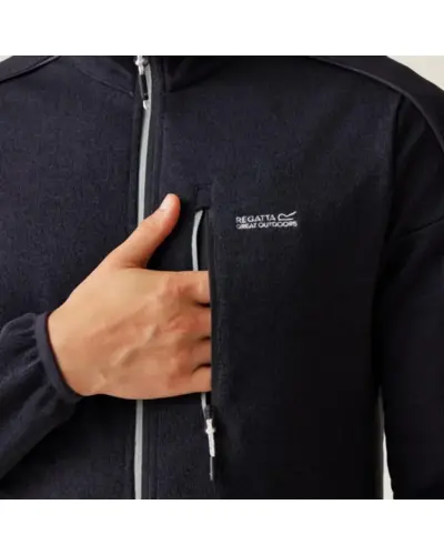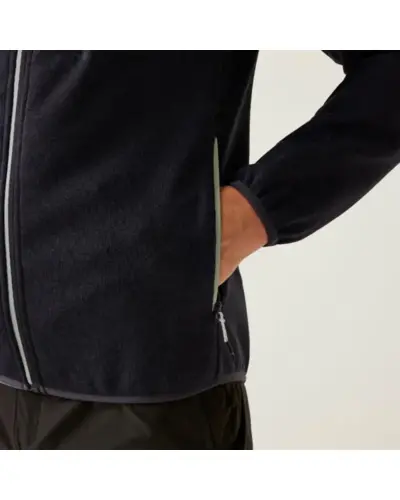Férfi zipzáras felső, Újrahasznosított 250 g/m2-es 100% poliészter , Stretch szegély a galléron, a mandzsettán, 2 cipzáros alsó zseb és 1 cipzáros mellzseb