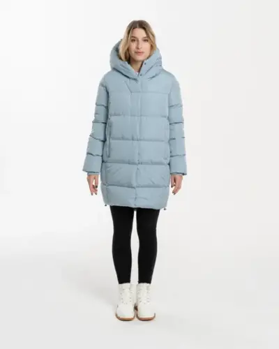 A DRK KATE tökéletes társ a hideg téli napokon. Cipzáras, pufi kialakításának köszönhetően igazán meleg, miközben a nem levehető kapucni és a tone-in-tone logó stílusos megjelenést biztosít. A cipzáras zsebek praktikusak, az alján lévő gumis behúzással pedig könnyedén szabályozhatod a kabát bőségét. Az ujjak végén található kötött passzé extra kényelmet és védelmet nyújt a hideg ellen. Anyagösszetétel: 100% polészter.