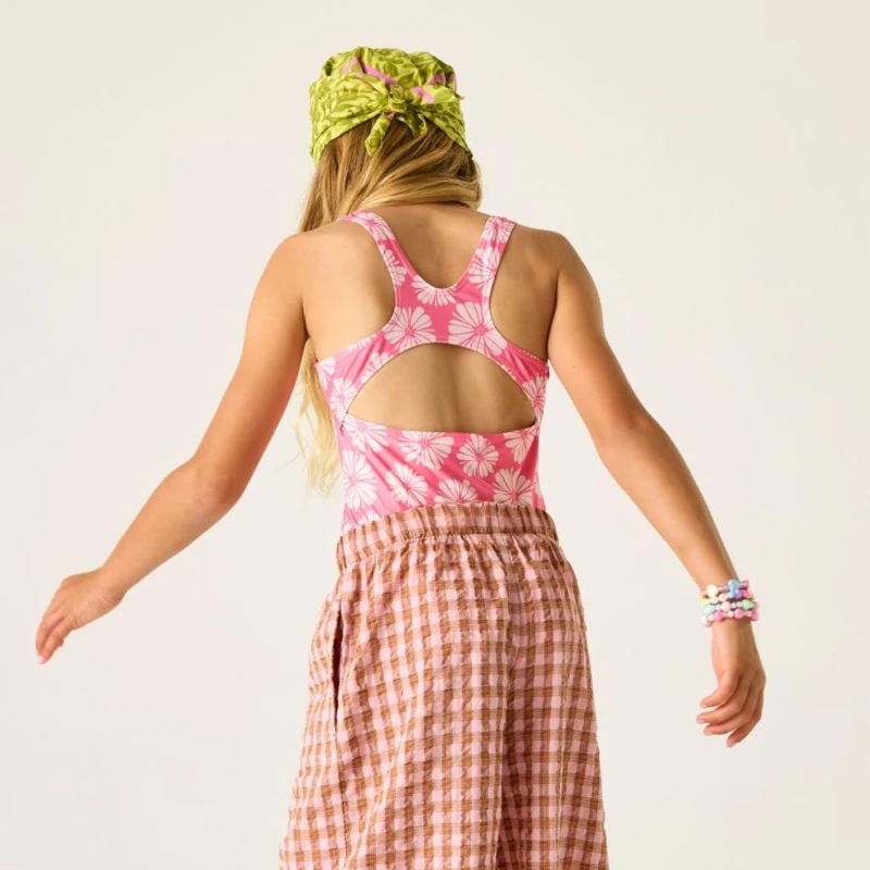 Lányka úszódressz, 85% poliészter/15% elasztán anyag, versenyzős hátrésszel