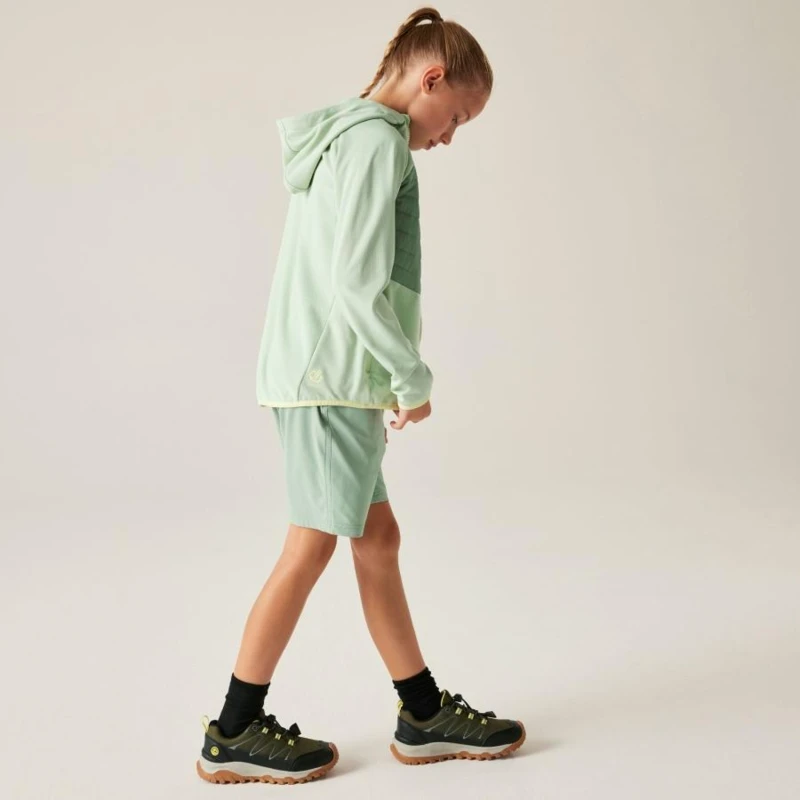 Gyerek steppelt felső, Újrahasznosított Iloft Air szigetelés (80 g/m?) – maximális melegség minimális tömeggel, Ripstop vízlepergető réteg a középső panelen az extra védelemért, Puha, rácsos szerkezetû újrahasznosított poliészter polár (245 g/m?) – meleg és légáteresztő, PFC, PFOA, PFOS mentes – környezetbarát kialakítás, Beépített kapucni és teljes hosszúságú cipzár állvédővel, 2 cipzáras alsó zseb a praktikus tárolásért, Rugalmas szegélyek a mandzsettán és a derékrészen a jobb illeszkedésért, Fényvisszaverő részletek a jobb láthatóságért, Ideális túrázáshoz, szabadtéri sportokhoz és hûvös időben való aktív mozgáshoz!