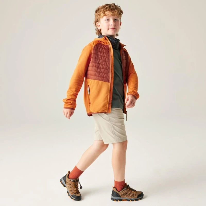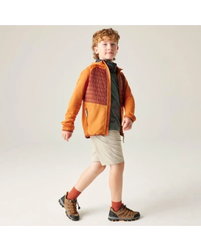 Gyerek steppelt felső, Újrahasznosított Iloft Air szigetelés (80 g/m?) – maximális melegség minimális tömeggel, Ripstop vízlepergető réteg a középső panelen az extra védelemért, Puha, rácsos szerkezetû újrahasznosított poliészter polár (245 g/m?) – meleg és légáteresztő, PFC, PFOA, PFOS mentes – környezetbarát kialakítás, Beépített kapucni és teljes hosszúságú cipzár állvédővel, 2 cipzáras alsó zseb a praktikus tárolásért, Rugalmas szegélyek a mandzsettán és a derékrészen a jobb illeszkedésért, Fényvisszaverő részletek a jobb láthatóságért, Ideális túrázáshoz, szabadtéri sportokhoz és hûvös időben való aktív mozgáshoz!